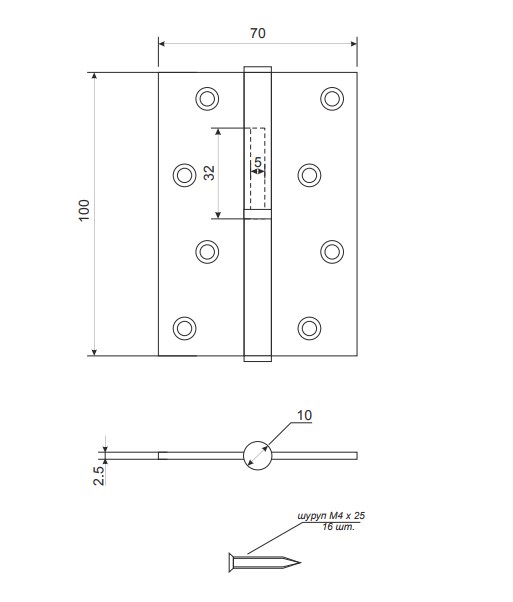 Петля накладная Vanger 100*70*2,5-P-G-R